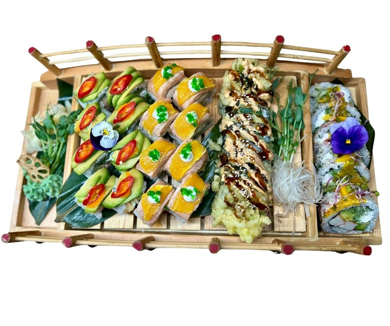 8szt. California łosoś w tempurze pod awokado i papryczką